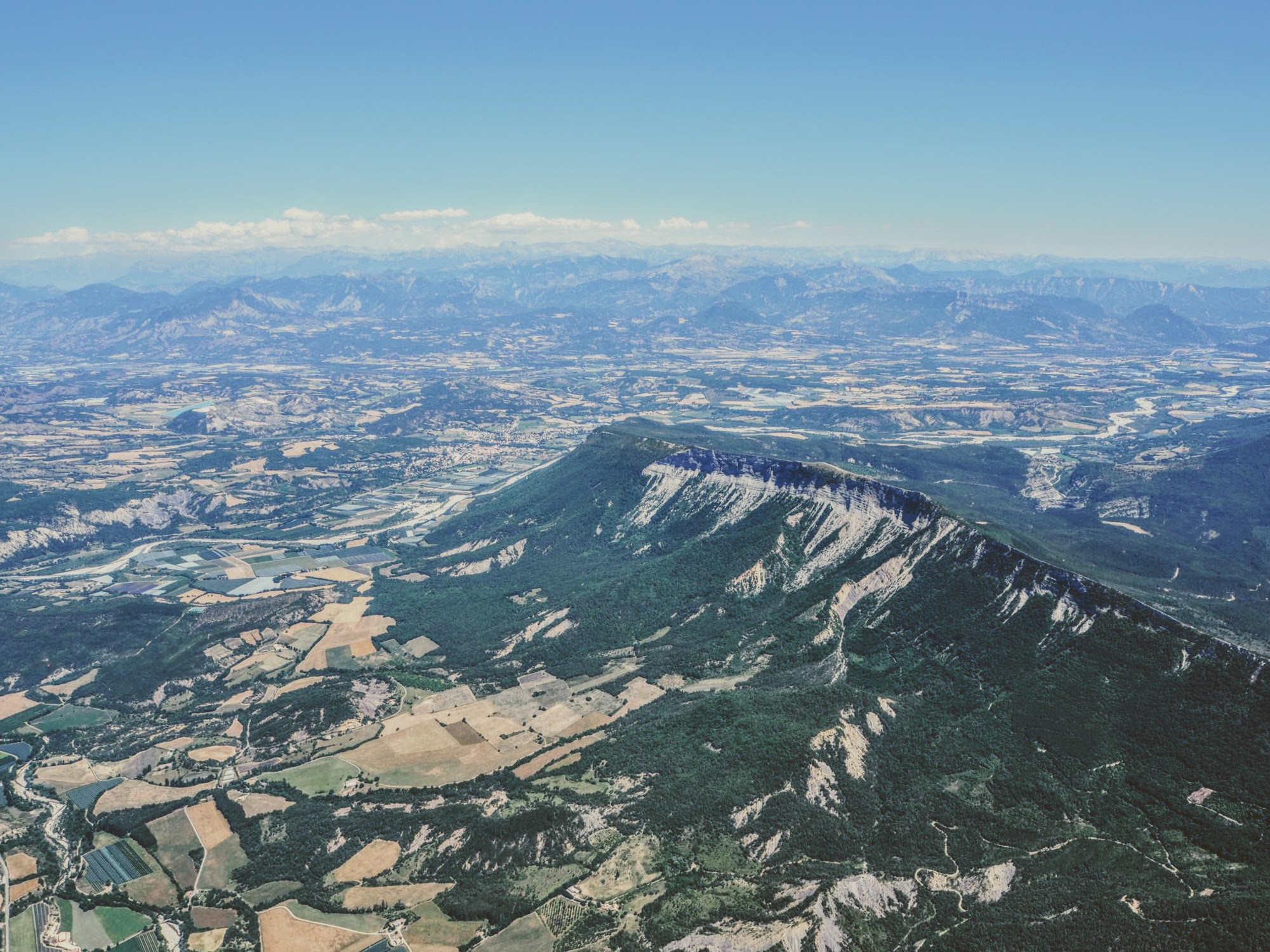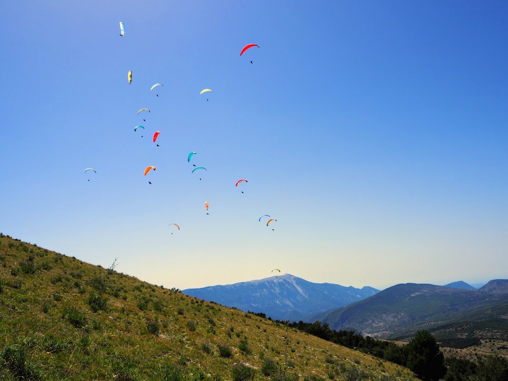 Shortly after taking off and taking aim at the house thermal, it goes up with a solid 7 meters a second, and soon we are at 2700m, that's more than 1500m above take off with glorious views in all directions: in the West the Mont Ventoux and the Massiv Central, then in the North the Alps and the rolling hills of the Provence in the South.