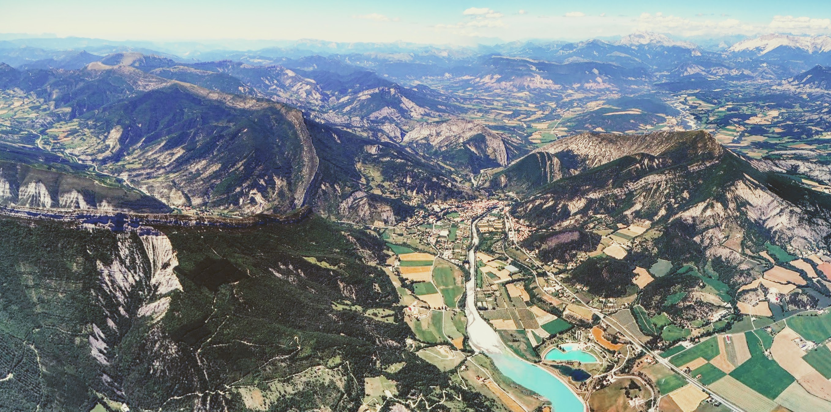 The goal for today is to fly back to Laragne, broadly by flying along the Vallée of the Méouge and the Vallée de Chabron along a few waypoints. Because of an inversion, this was expected to be a difficult task. As it turned out, the inversion was soon burned away and it was easy to get up above 2500m, once more with stunning views all around.