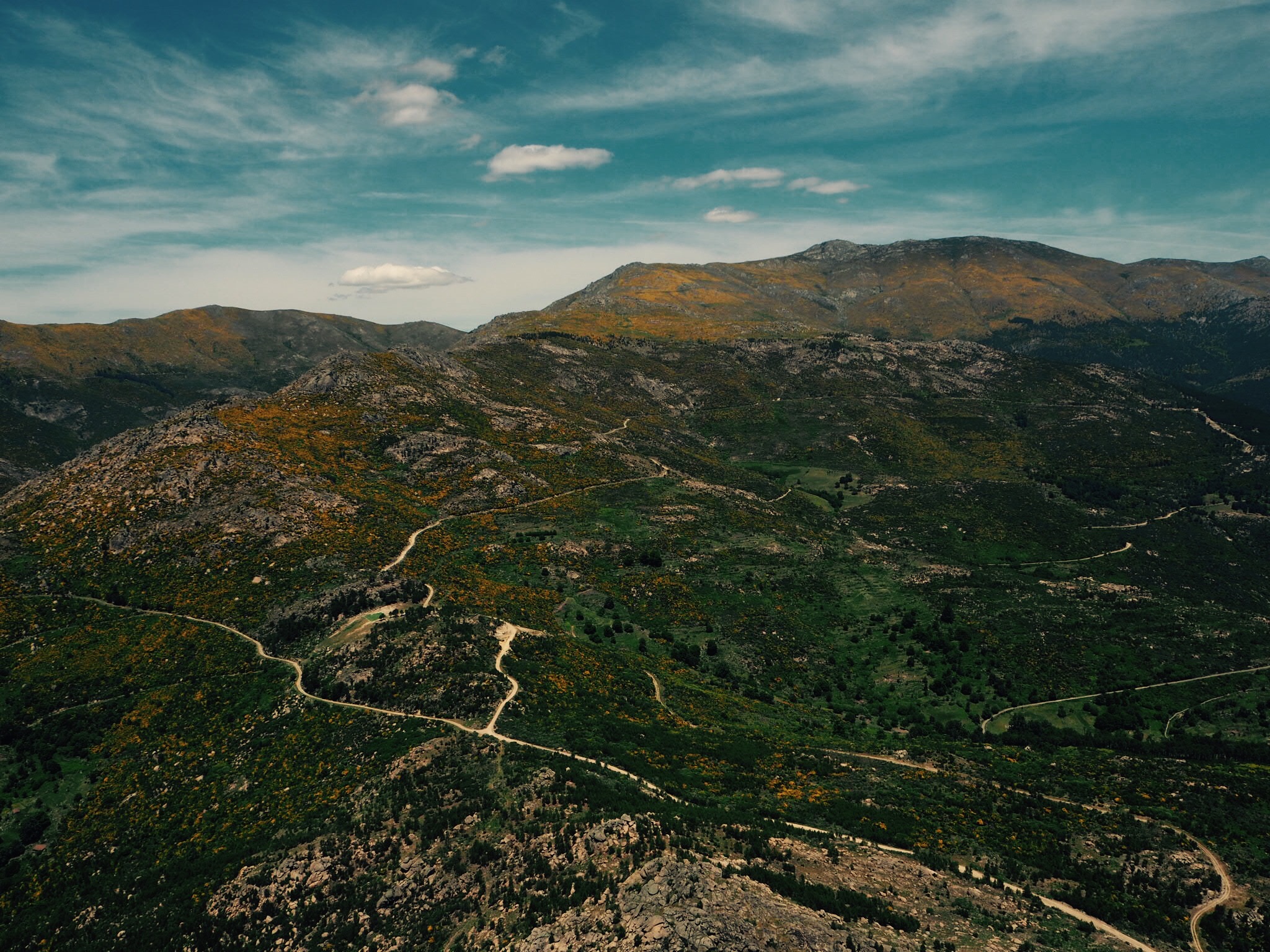 View back towards take-off. The slopes are dotted with yellow broom genista shrubs which add an intense fragrance to every thermal.